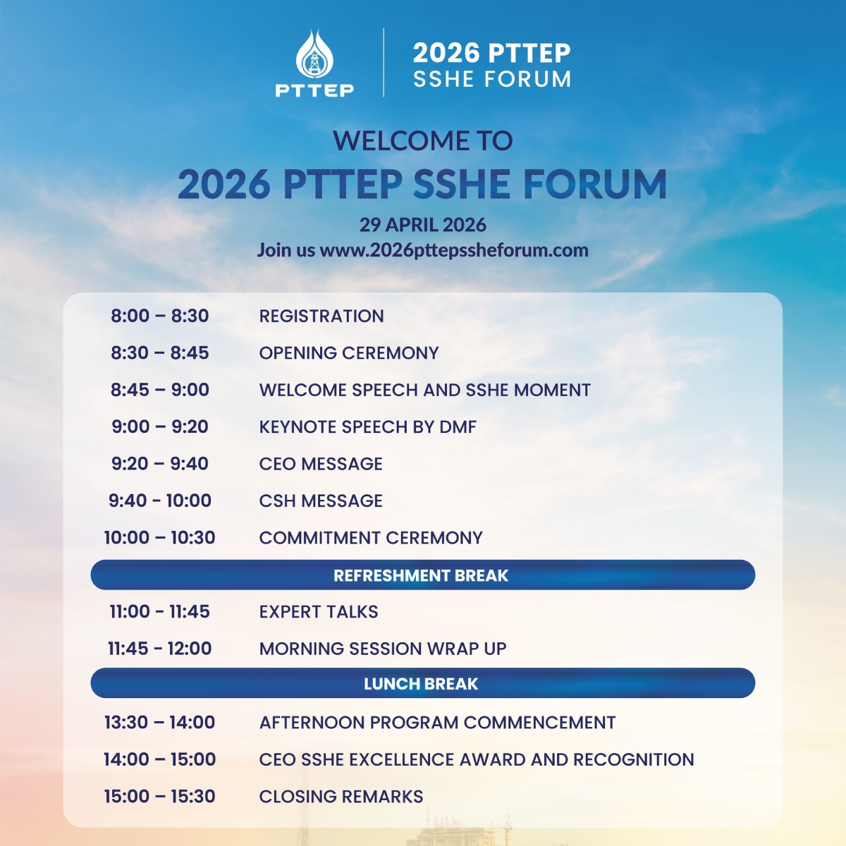 งานสำคัญด้านความปลอดภัย มั่นคง อาชีวอนามัย และสิ่งแวดล้อม ที่จัดโดย ปตท.สผ. (PTTEP)