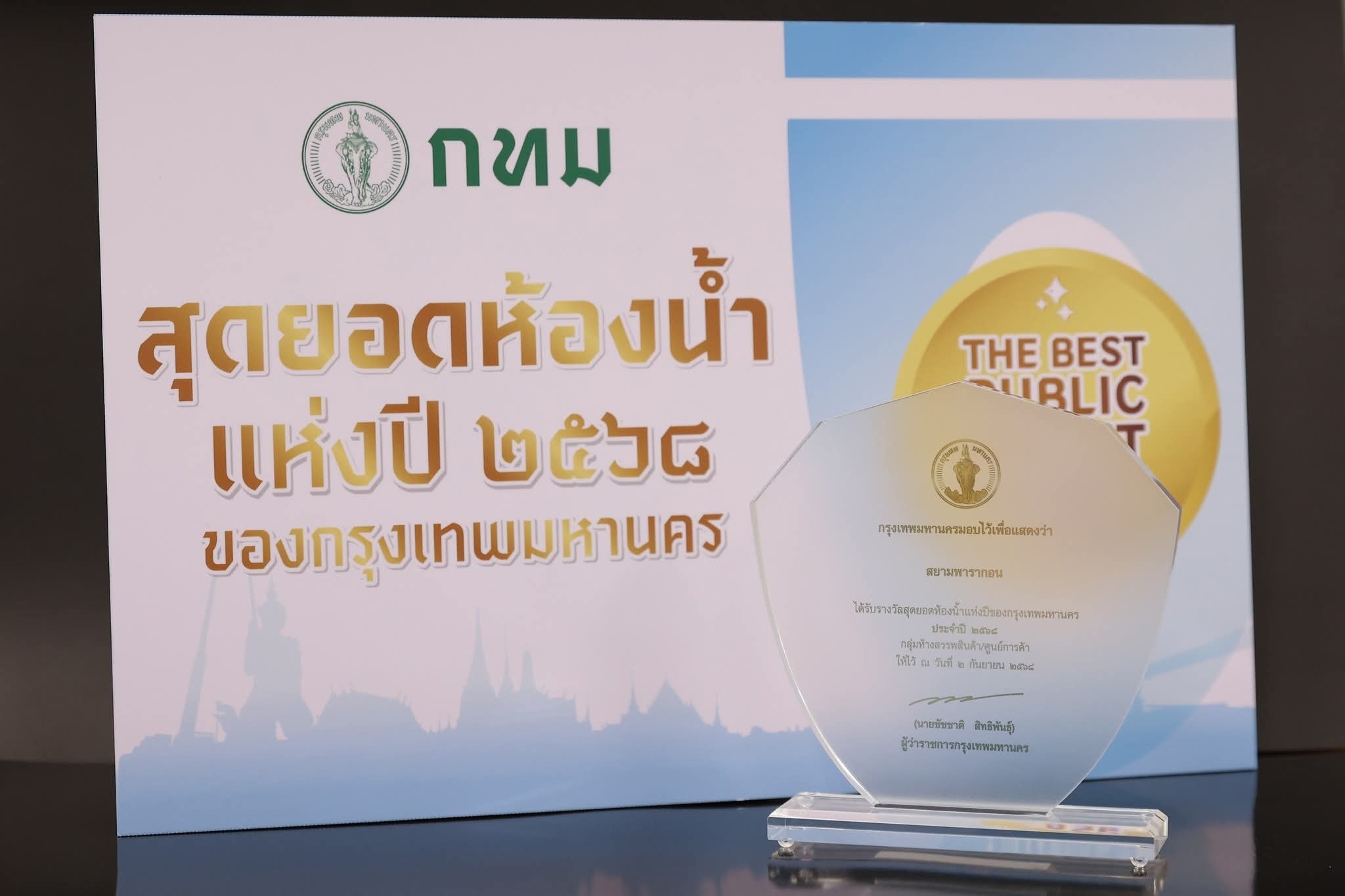 สยามพารากอน คว้ารางวัล “สุดยอดห้องน้ำแห่งปี” จากเกณฑ์การประเมินมาตรฐานห้องน้ำสาธารณะระดับประเทศ และ “ห้องน้ำขวัญใจมหาชน” จากผลโหวตบนเว็บไซต์ BangkokPublicToilet.com
