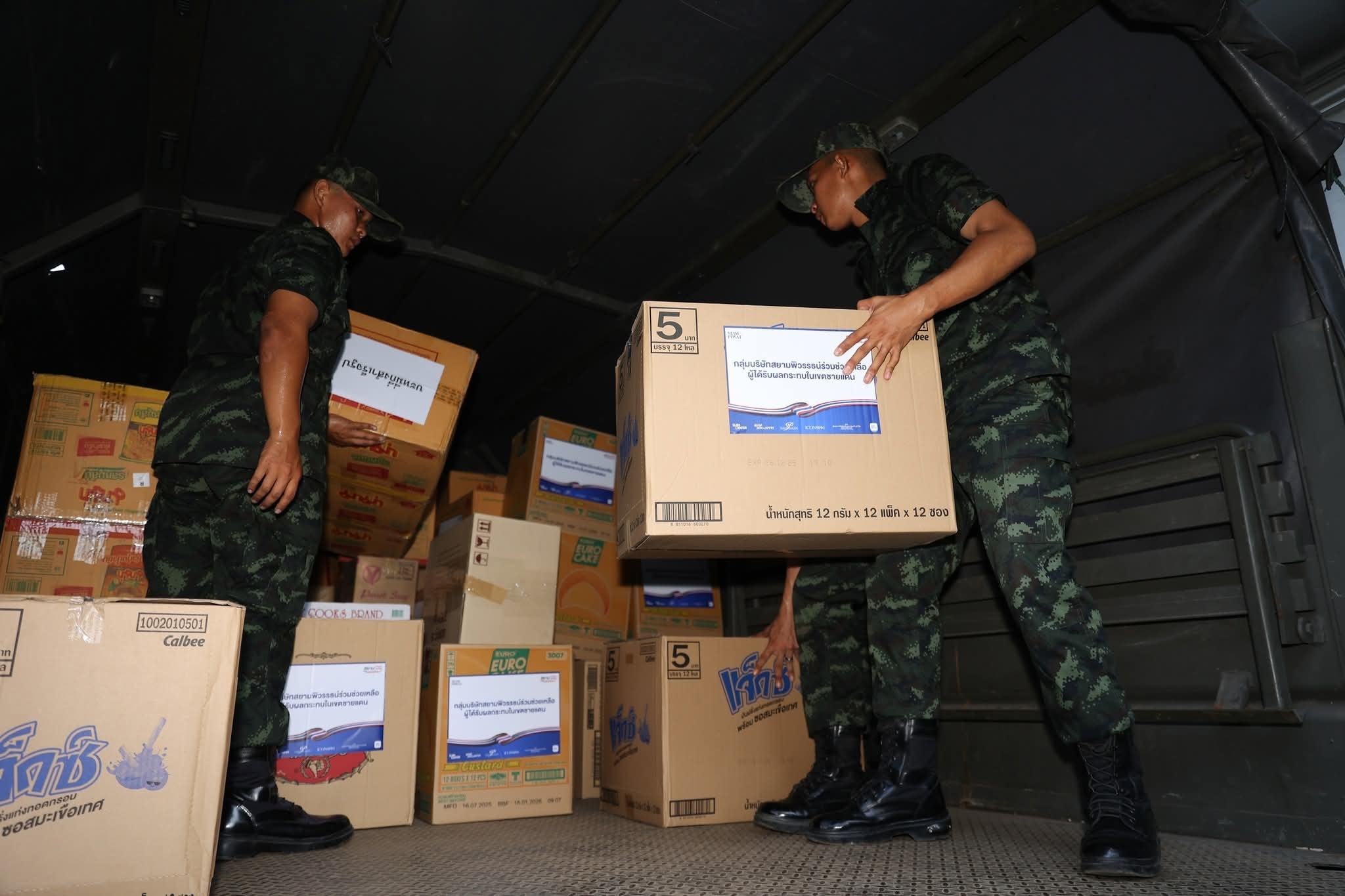 พร้อมกันนี้ ยังได้ส่งมอบของใช้จำเป็น อาทิ อาหารสำเร็จรูป อาหารแห้ง ขนมขบเคี้ยว นม ของใช้จำเป็นสำหรับสตรี ฯลฯ ซึ่งองค์กรพันธมิตรภาครัฐและเอกชน เหล่าพนักงานบริษัท ร้านค้าผู้เช่า ลูกค้า ได้ร่วมกันมอบให้เพื่อเป็นกำลังใจให้ผู้ได้รับผลกระทบในเขตพื้นที่ชายแดน โดยมี พันเอกหญิง ดุจดาว เสือเฒ่า นายทหารปฏิบัติการประจำ กรมกิจการพลเรือน ทหารบก เป็นผู้รับมอบ และจะส่งต่อให้กับกองทัพภาคที่ 2 เพื่อนำสิ่งของไปมอบให้กับผู้ที่ได้รับผลกระทบในเขตพื้นที่ชายแดนต่อไป